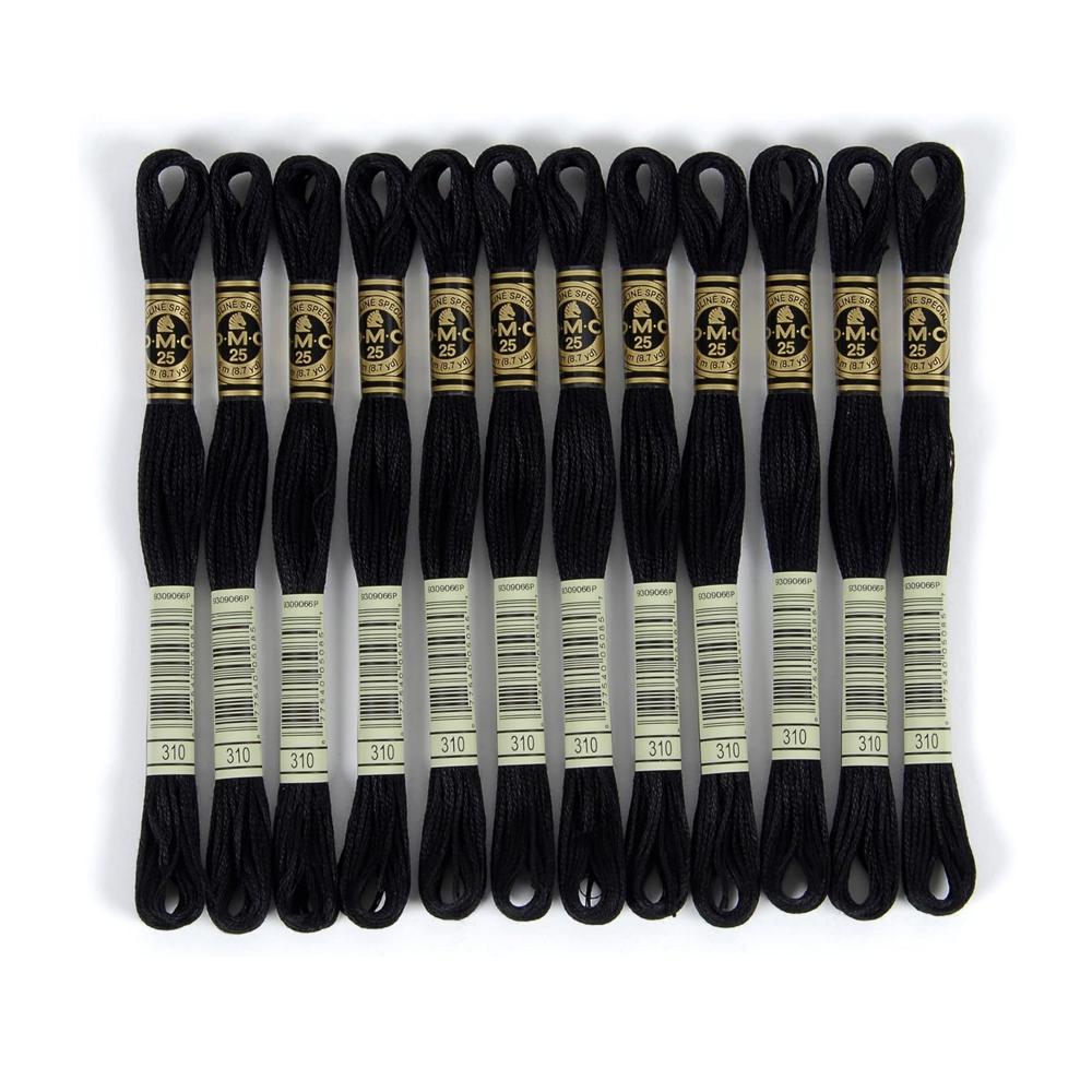 DMC 6-Strand Embroidery Cotton Floss – Black – 12/Pkg